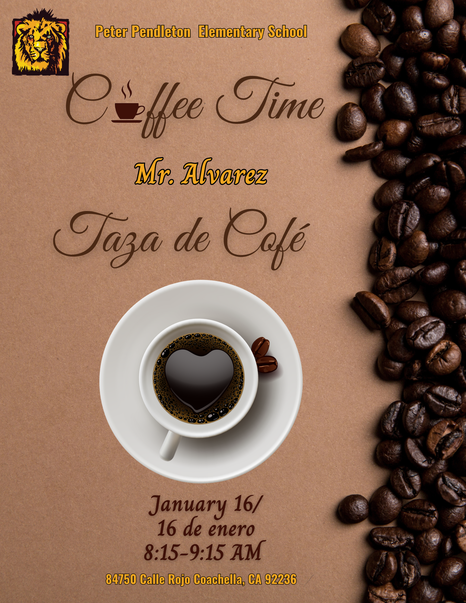 Dear Peter Pendleton Parents and Guardians,You are warmly invited to attend Coffee with the Principal on Friday, January 16, from 8:15 to 9:15 a.m. This is a wonderful opportunity to connect, share...